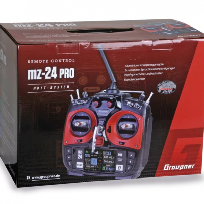Die mz-24 war die Fernsteuerung des Jahres 2015 bei der Leserwahl der FMT. Graupner hat sich auf diesen Erfolg nicht ausgeruht und entwickelte den verbesserten mz-24 PRO Sender mit 12 Kanälen – von Profis für Profis. Dies Paket umfasst den mz-24 PRO Sender, sowie eine micro-SD Karte, Senderakku, Ladegerät und viele Zubehör-Kabel.